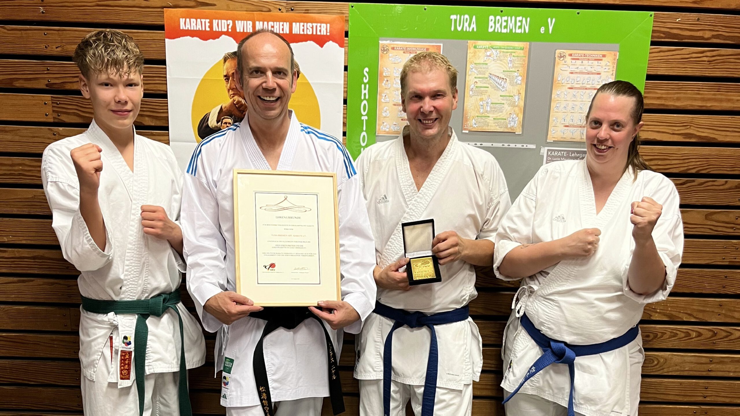 Karate beim Turn- und Rasensportverein (TURA) in Bremen hat eine lange Tradition. Schon seit dem Jahr 1975 besteht die Abteilung in Gröpelingen, sie wurde von Hosan Park gegründet. Der Verein gehört damit zu den ältesten Karate-Vereinen in Deutschland und wurde kürzlich durch den Deutschen Karate Verband für ihr 50-jähriges Vereinsjubiläum mit der Ehrenplakette in Gold ausgezeichnet. Durchgeführt wurde die Ehrung durch den Präsidenten des Bremer Karate Verbandes, Reiner Zimbalski, der das langjährige Engagement in einem Stadtteil mit vielen sozialen Herausforderungen lobte.