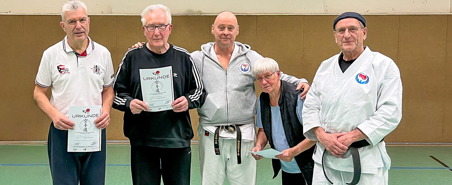 Mit dabei war auch die „Parkinson-Karate-Gruppe“ vom GTV, die sich trotz ihrer besonderen Situation der Kyu-Prüfungen zum 7. und 8. Kyu gestellt haben.
