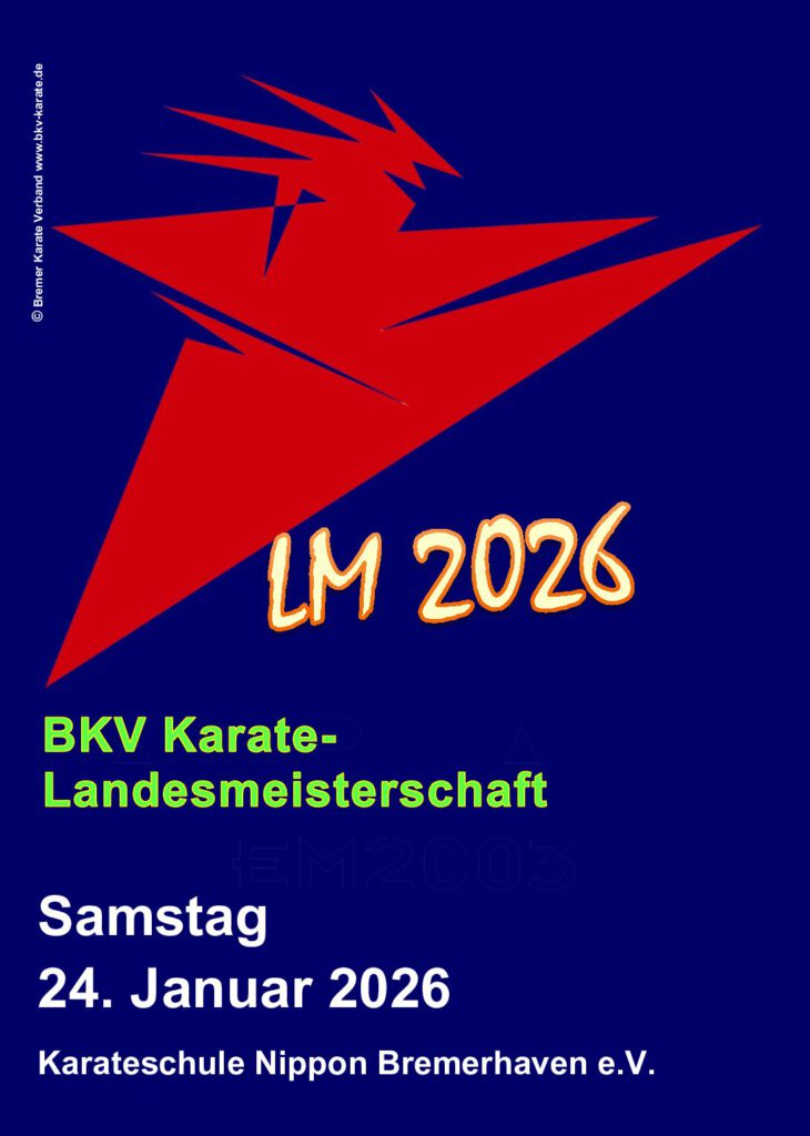 Landesmeisterschaft 2026Samstag, 24. Januar 2026Veranstaltungsort: BogenhalleWiener Str. 3, 27568 BremerhavenInformation: Bremer Karate Verband e.V.BKV-Geschäftsstelle, Bütteler Weg 4a, 27607 GeestlandTelefon: +49 (0) 4743-27420, Telefax: +49 (0) 4743-27421E-Mail: geschaeftsstelle@bkv-karate.de Das Meldefenster in … Bremer Landesmeisterschaft 2025 weiterlesen