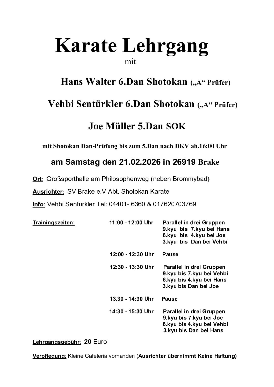 Hans Walter 6.Dan Shotokan („A“ Prüfer) Vehbi Sentürkler 6.Dan Shotokan („A“ Prüfer) Joe Müller 5.Dan SOK […]
